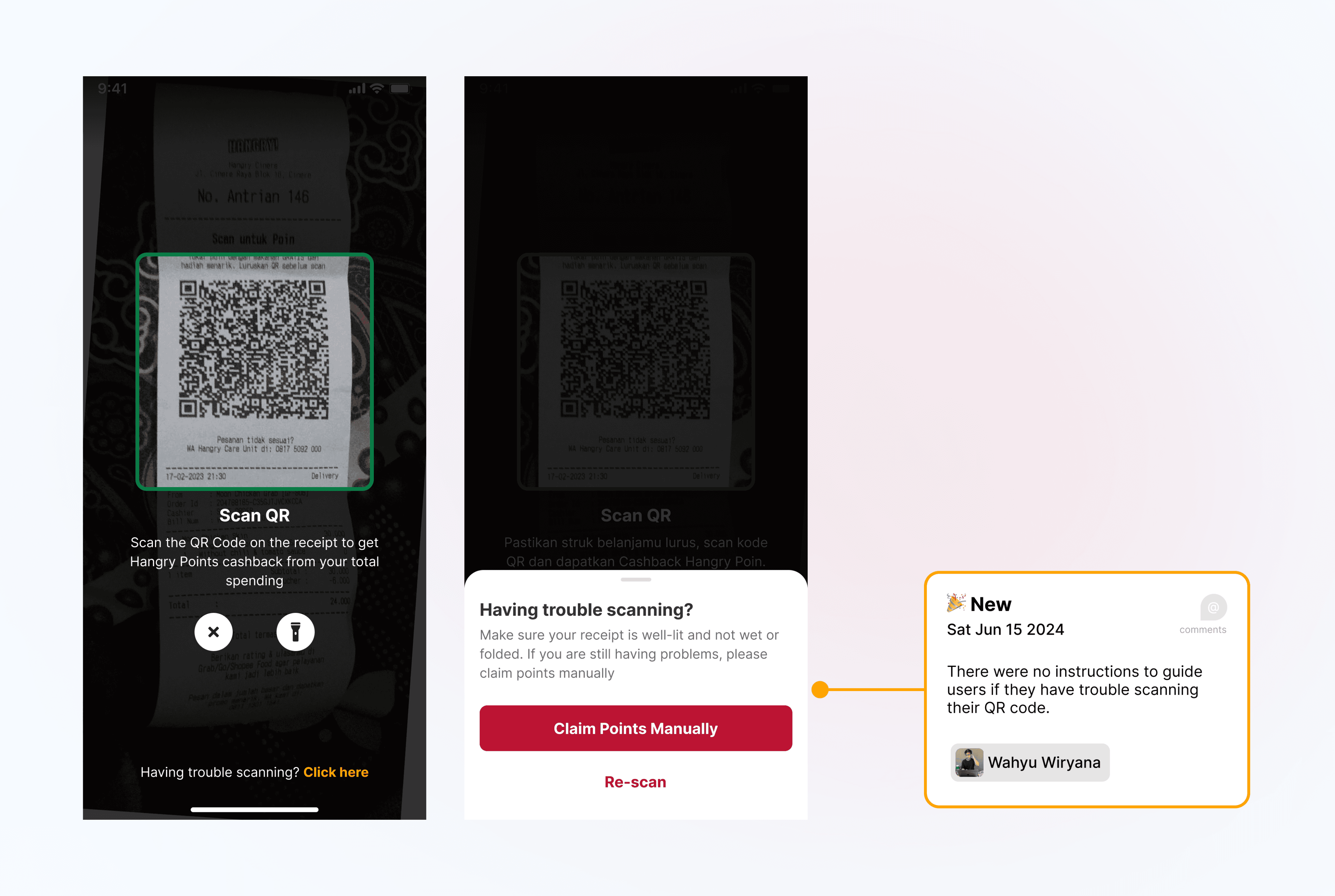 How might we help users scanning their QR Code properly by providing in-app instructions & reduce users’ complaints?